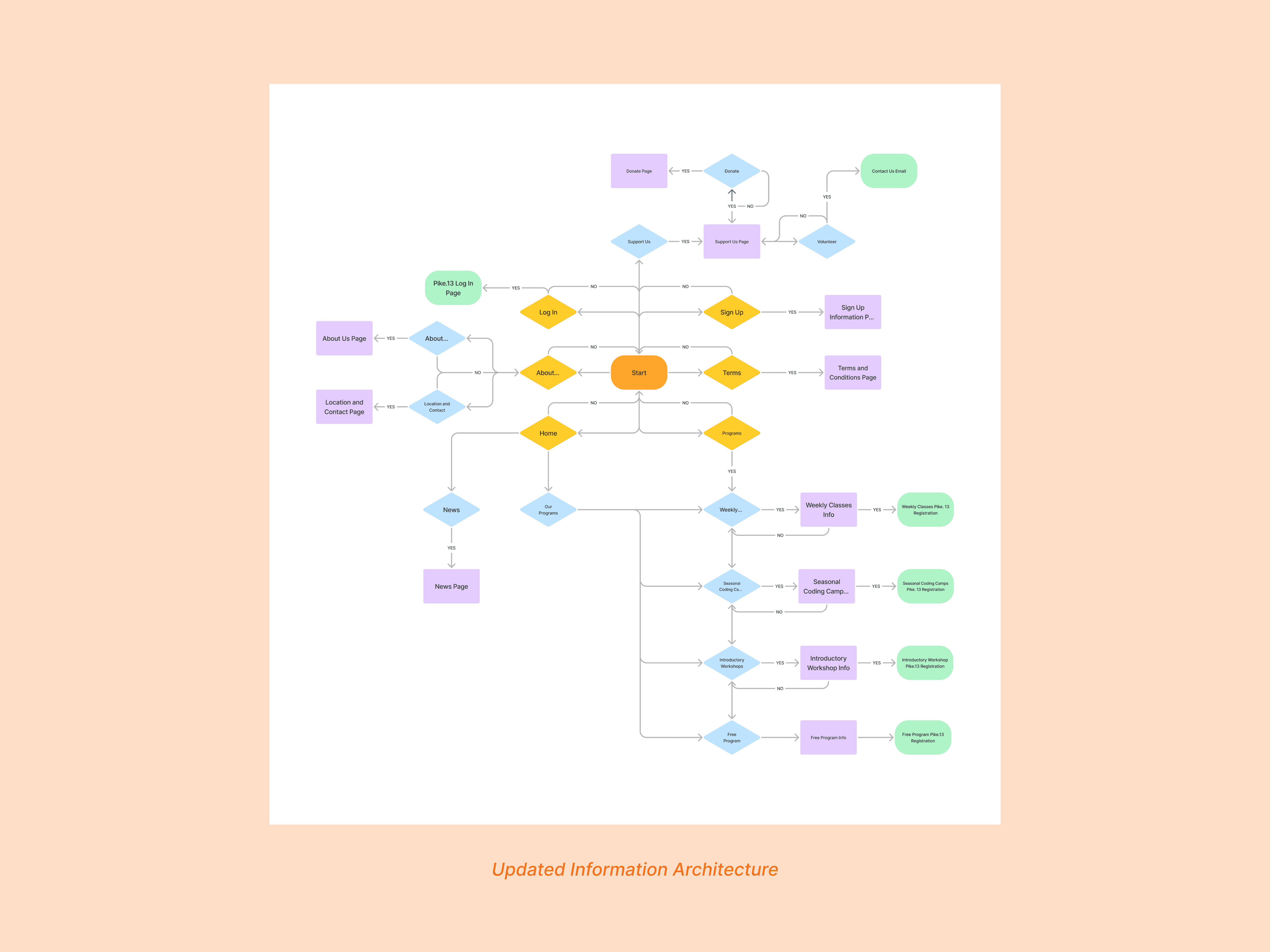 I worked on improving the overall user flow of the website. This included creating a new navigation system that is more simplified from the previous information architecture. With clear hierarchy and labelling, the website will be more organized and less confusing. Along with the content strategist, we worked on the wording of each page to ensure that all information were easier to understand.