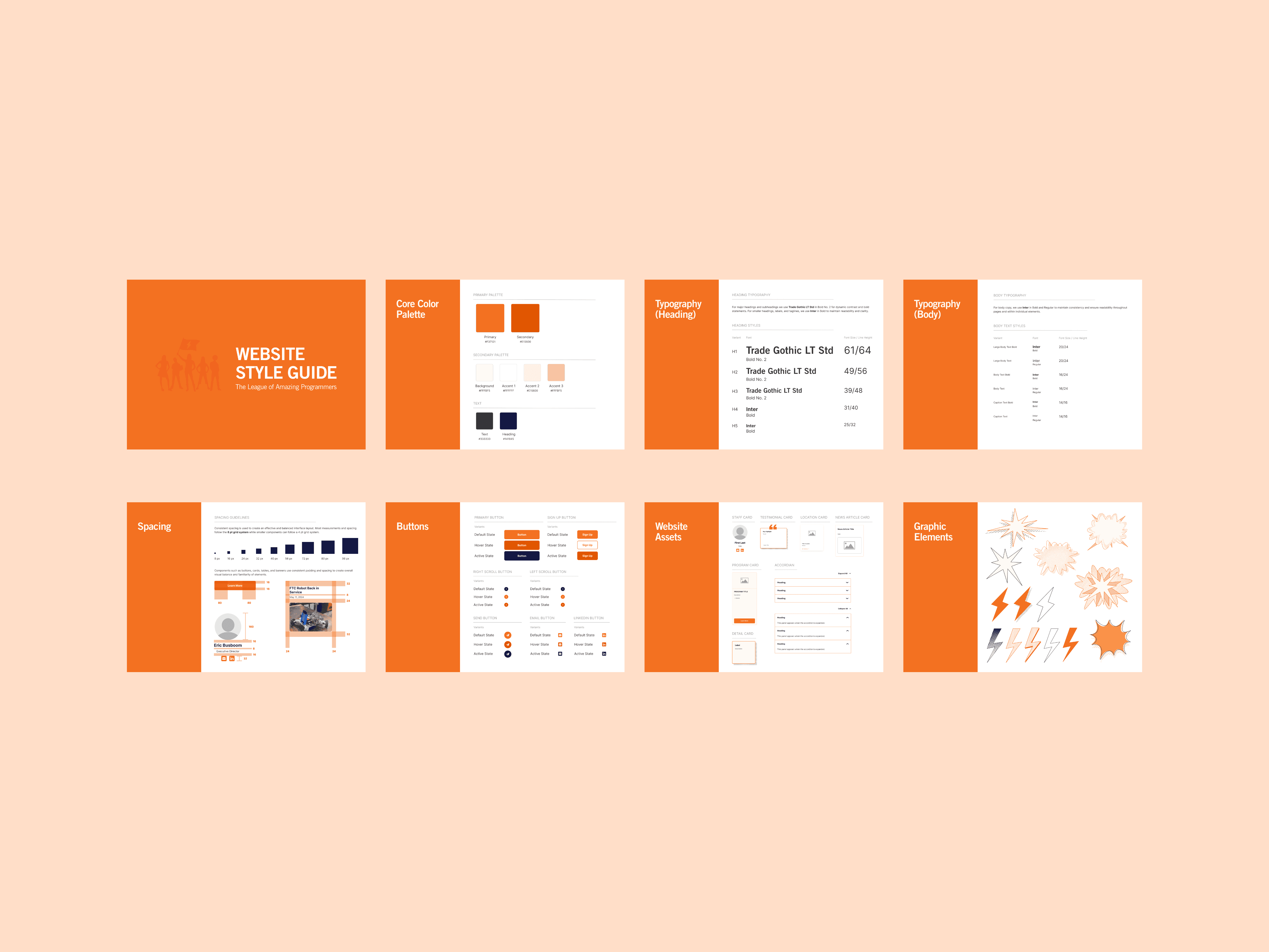 We created a style guide that matched the stakeholder’s request of keeping their core brand color, orange, and implementing more “Pop hero” effects. We created a set of graphic elements, fonts, buttons, and color palette to improve the uniformity of the current website.
